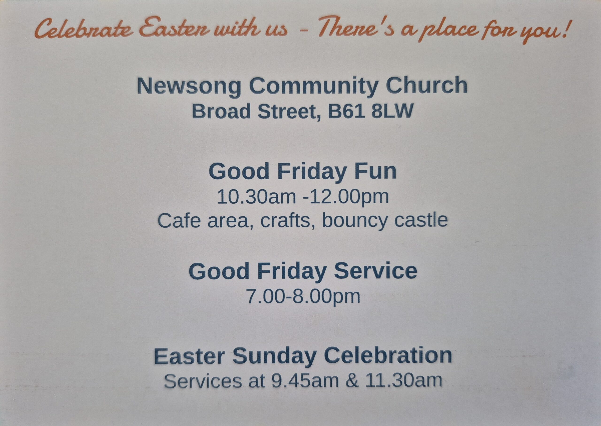 Newsong Community Church 39, Broad Street Sidemoor Bromsgrove B61 8LW